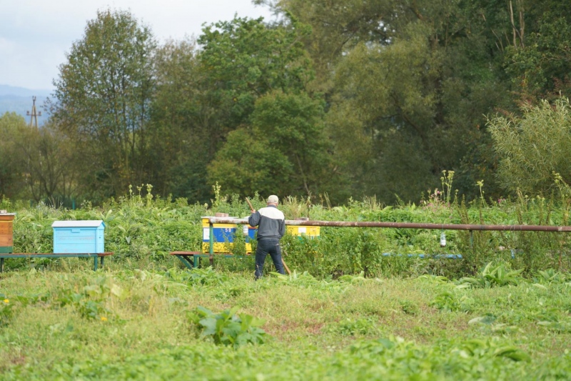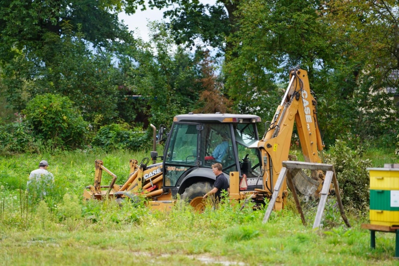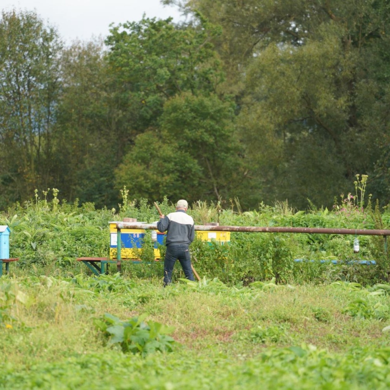Nie zabrakło także regularnych przeglądów pasieki pszczelej. Dbaliśmy o kondycję uli i obserwowaliśmy pracę pszczół, które odgrywają ważną rolę w ekosystemie działki i są stałym elementem naszych działań edukacyjnych.