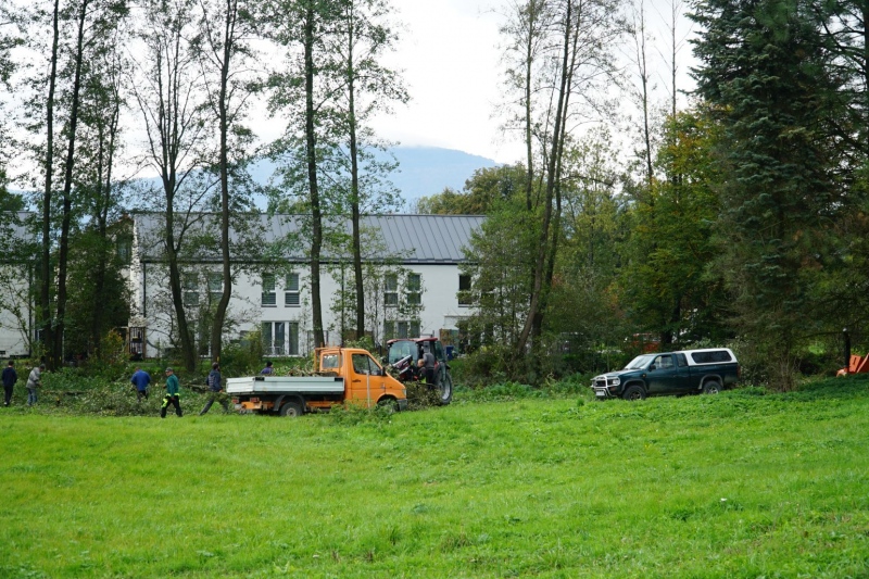 To kolejne z istotnych działań przygotowawczych do budowy Centrum Integracji Rodzin. Jednak przyszłe zagospodarowanie działki to nie jedyny powód wycinki niektórych drzew. Znaczna część drzew, które zostały usunięte była chora lub częściowo spróchniała, co stwarzało zagrożenie szczególnie podczas silnych wiatrów. Przy rewitalizacji przydatny okazał się ciężki sprzęt (koparki, samochody ciężarowe, rębaki). Jesienią nie obyło się również bez prac porządkowych, bo na bieżąco wywożono wykopane z ziemi bloki betonowe i inne odpady budowlane, pozostałe po poprzednich właścicielach tego terenu.