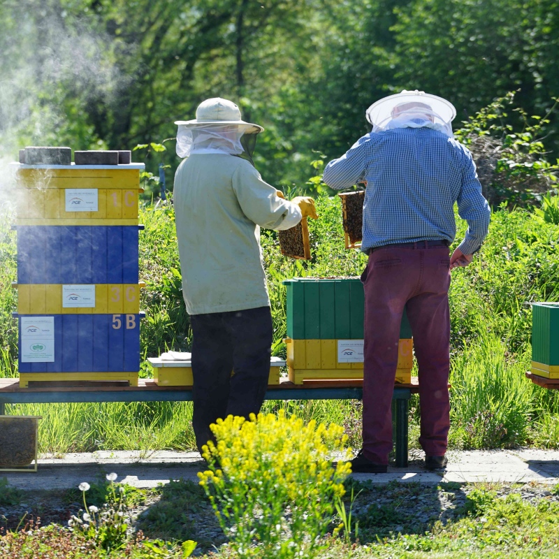 Początkiem miesiąca nie zabrakło porządków na działce w Łodygowicach oraz tradycyjnego majówkowego grilla. Słoneczna pogoda pozwoliła wykonać najważniejsze prace pasieczne. Dopisały także pożytki, a dzięki pracowitości pszczół pszczelarze z eurobeskidów wybrali miód z uli.