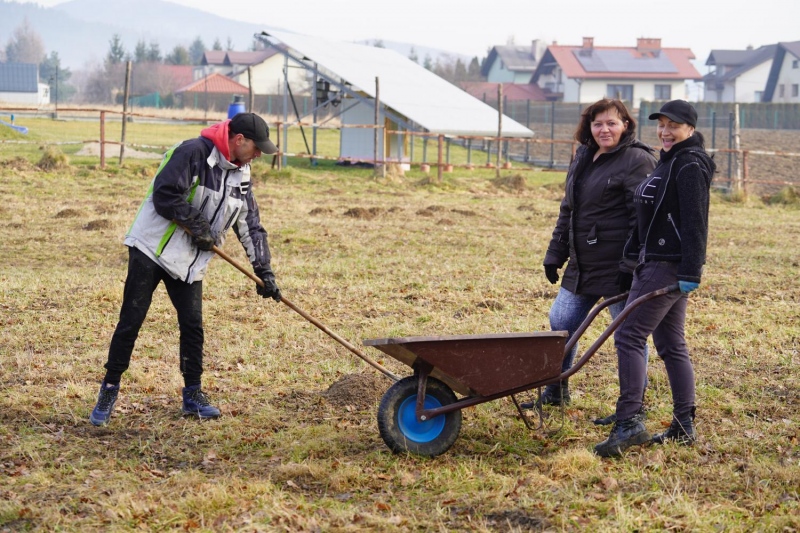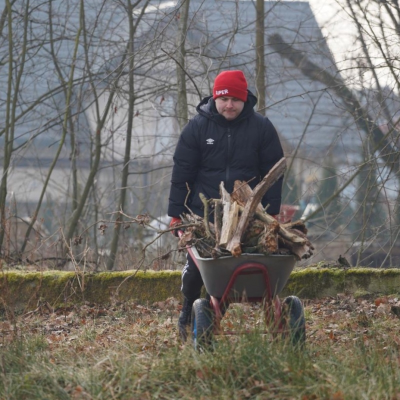 Choć zima nie odpuszczała od razu, na działce przyszłego Centrum Integracji Rodzin panowała aktywna atmosfera. Luty i marzec upłynęły przede wszystkim pod znakiem prac porządkowych oraz przygotowywania terenu do kolejnych etapów inwestycji.